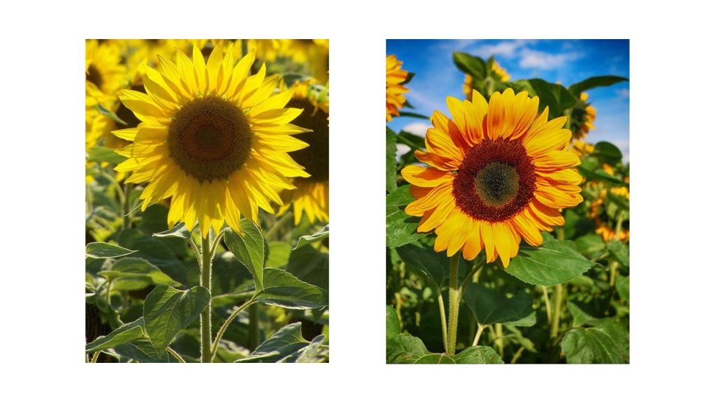Beide Pflanzen gehören zu der Art Sonnenblume.