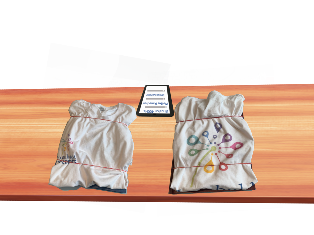 Probiere gerne andere Materialien als Absorber aus (z.B. ein Handtuch oder eine Wolldecke) und achte darauf, ob sich die Lautstärke verändert.