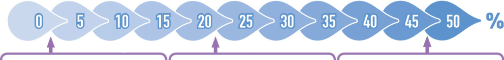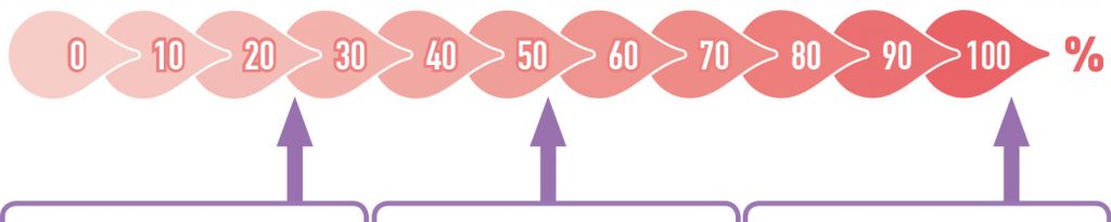 Ordnet den Abbildungen den entsprechenden Versiegelungsanteil entlang der Skala zu.