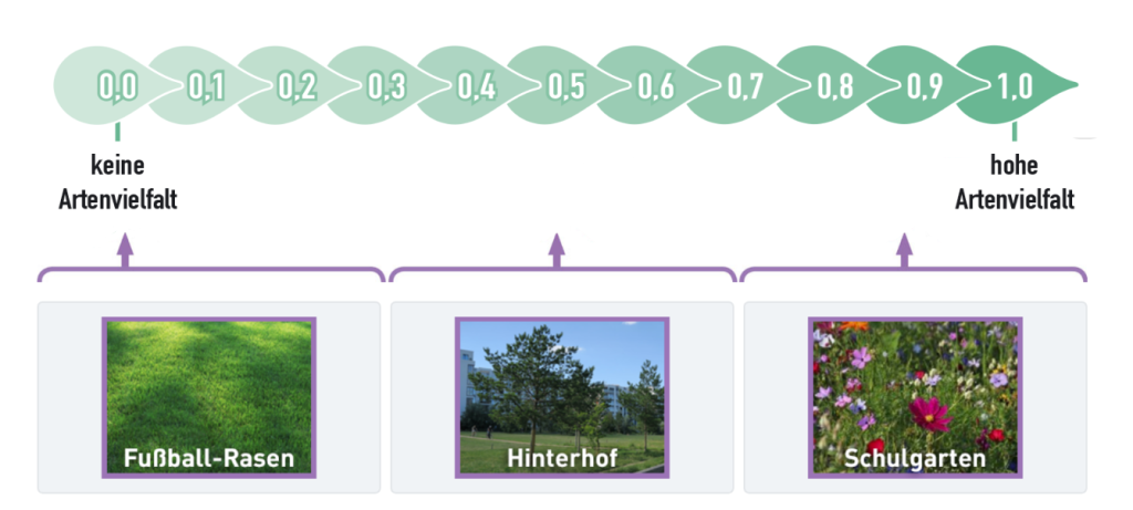 An einem Ort mit einer Artenvielfalt von 0 ist keine Artenvielfalt vorhanden und an einem Ort mit der Artenvielfalt von 1 bzw 100% ist die maximale Artenvielfalt vorhanden.
