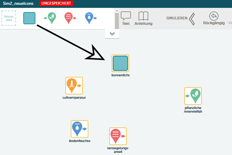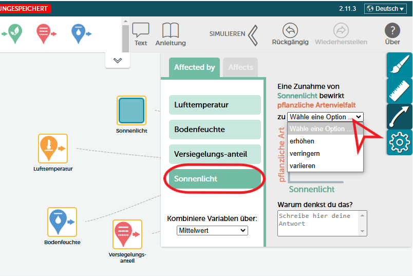 1. Simuliert das neue Modell: Verschiebt die Regler und beobachtet die Zusammenhänge zwischen den hinzugefügten Faktoren.